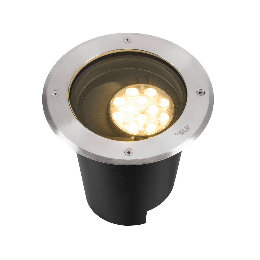 floor recessed luminaire DASAR® L DALI round, swivelling, asymmetrical, dimmable IP65/IP67, stainless steel dimmable