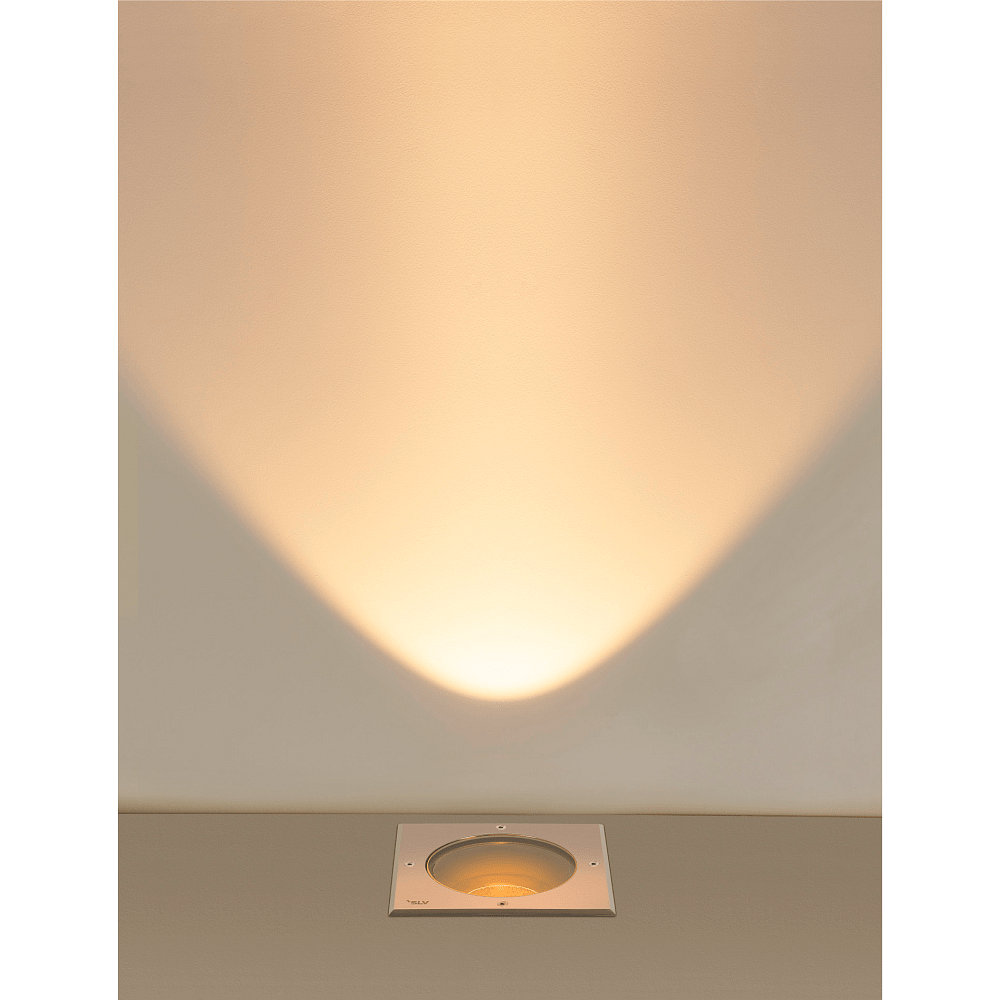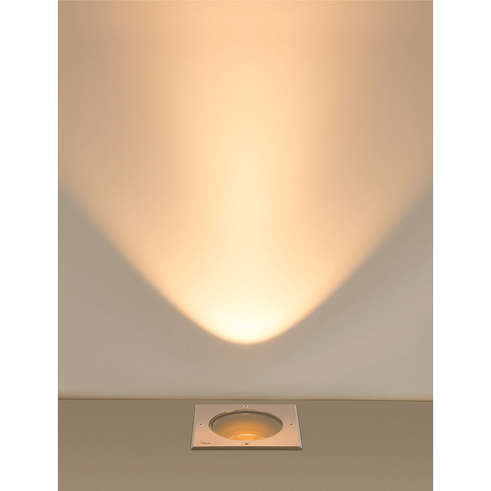 The LED recessed floor light DASAR® L SYM impresses with state-of-the-art technology and a robust design made of stainless steel 316. With a power output of 19 watts, it produces a warm white light at 3000 Kelvin and a luminous intensity of 1950 lumens with a beam angle of 24°. Thanks to the symmetrical light distribution, it ensures even illumination of surfaces. The luminaire is adjustable, allowing flexible orientation of the light beam to guarantee optimal lighting.