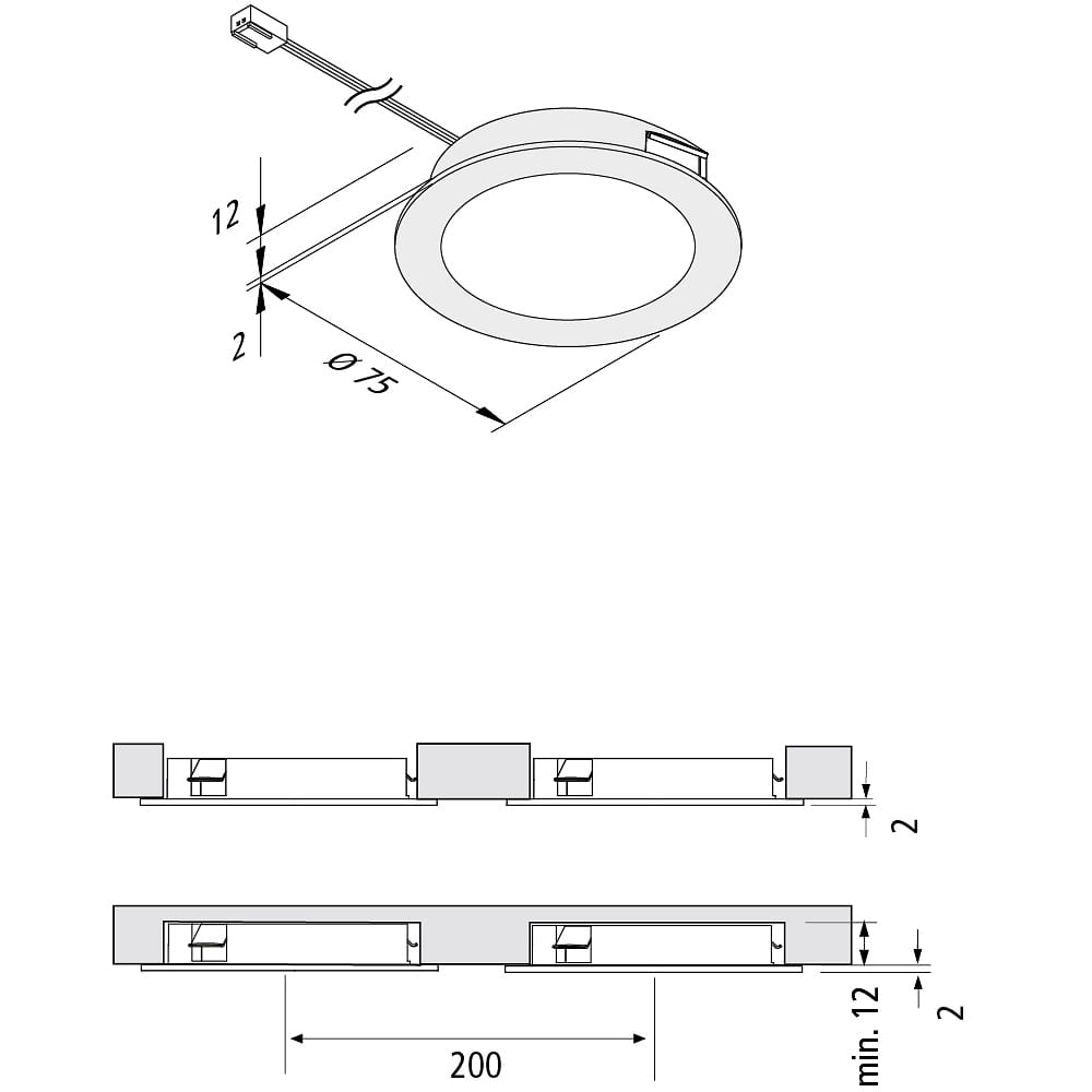 The FAR 68 is a flat, round LED recessed light for furniture in dry indoor areas. It can also be installed in cavity ceilings and lightweight ceilings when using the optional mounting clip. With a rigid appearance and a diffuser lens, it provides a flat, homogeneous, and symmetrical light output.