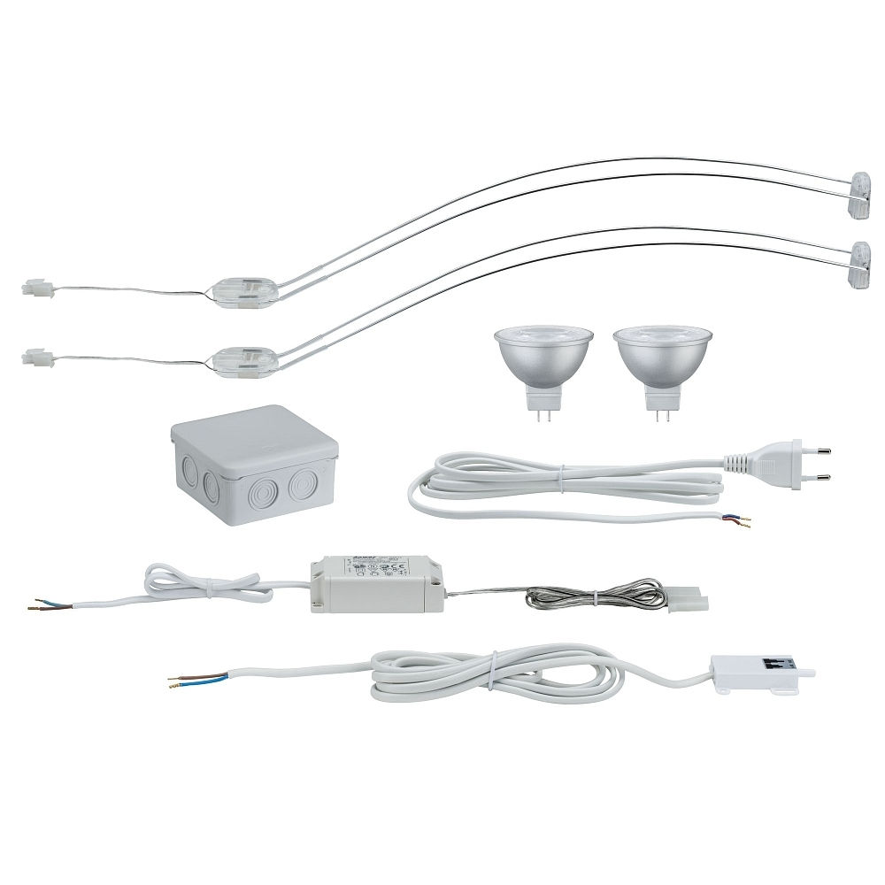 Galeria Aufschrankleuchte LED ASSISTENT II, mit Bogenhalterung + Schrankschalter, inkl. 2x GU5.3 4W 2700K, Chrom