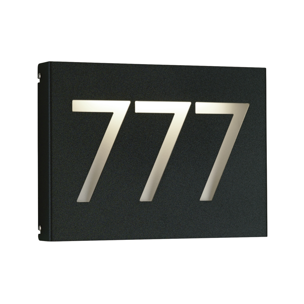 illuminated house number TYPE NO 6005 3-digits IP44, opal, black dimmable