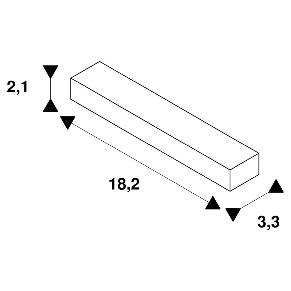 The joint connector measures 18.2 cm in length, 3.3 cm in width, and 2.1 cm in height. The IP protection rating IP20 guarantees protection against solid foreign objects larger than 12.5 mm in diameter, which is sufficient for the intended area of use. The product is intended for indoor use only and is not waterproof.