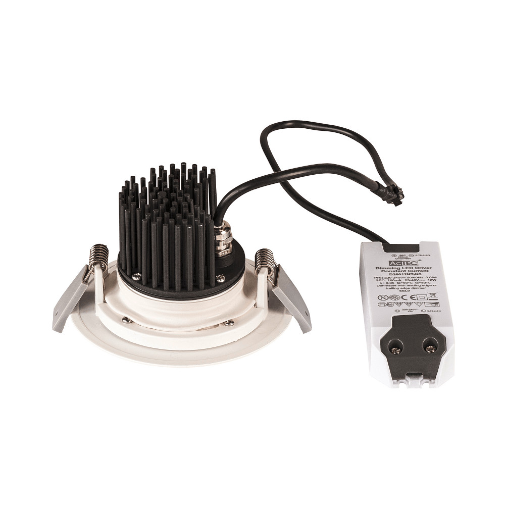 The KINI spotlight is dimmable with both leading-edge and trailing-edge dimmers, allowing easy adjustment of brightness. This enables individual lighting moods – from bright and functional to dimmed and atmospheric. Additionally, the spotlight is swiveling, so the light beam can be precisely directed to highlight specific areas or objects.