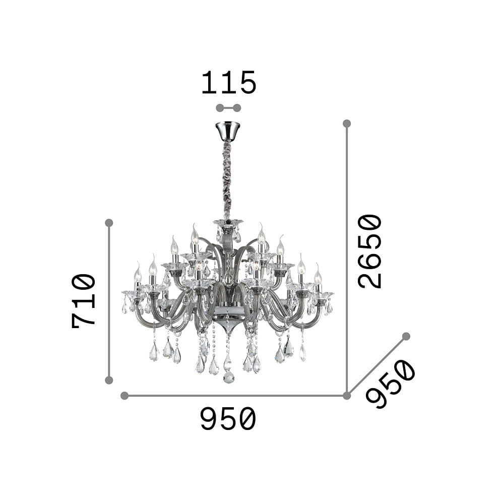 Der Kronleuchter COLOSSAL SP15 besticht durch sein exklusives Design und seine hochwertige Verarbeitung. Mit 15 Flammen und einer Größe von Ø 95 cm und einer Höhe von 90 cm ist er ein echter Blickfang in jedem Raum.
