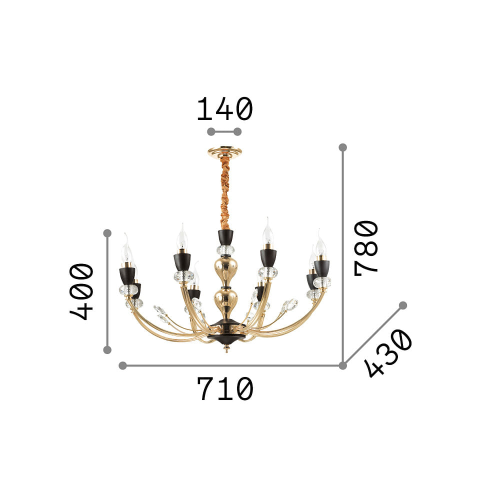 Kronleuchter VANITY, 8-flammig, Ø 71cm, E14, Gold / Kristall / schwarz