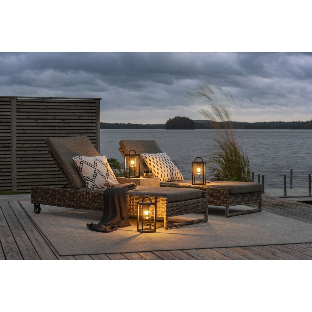 With IP44 protection class, the ground lantern BOLOGNA small is protected against the ingress of splash water and dust. This makes it ideal for outdoor use, but also suitable for indoor use. The lantern remains reliable and safe even in adverse weather conditions.