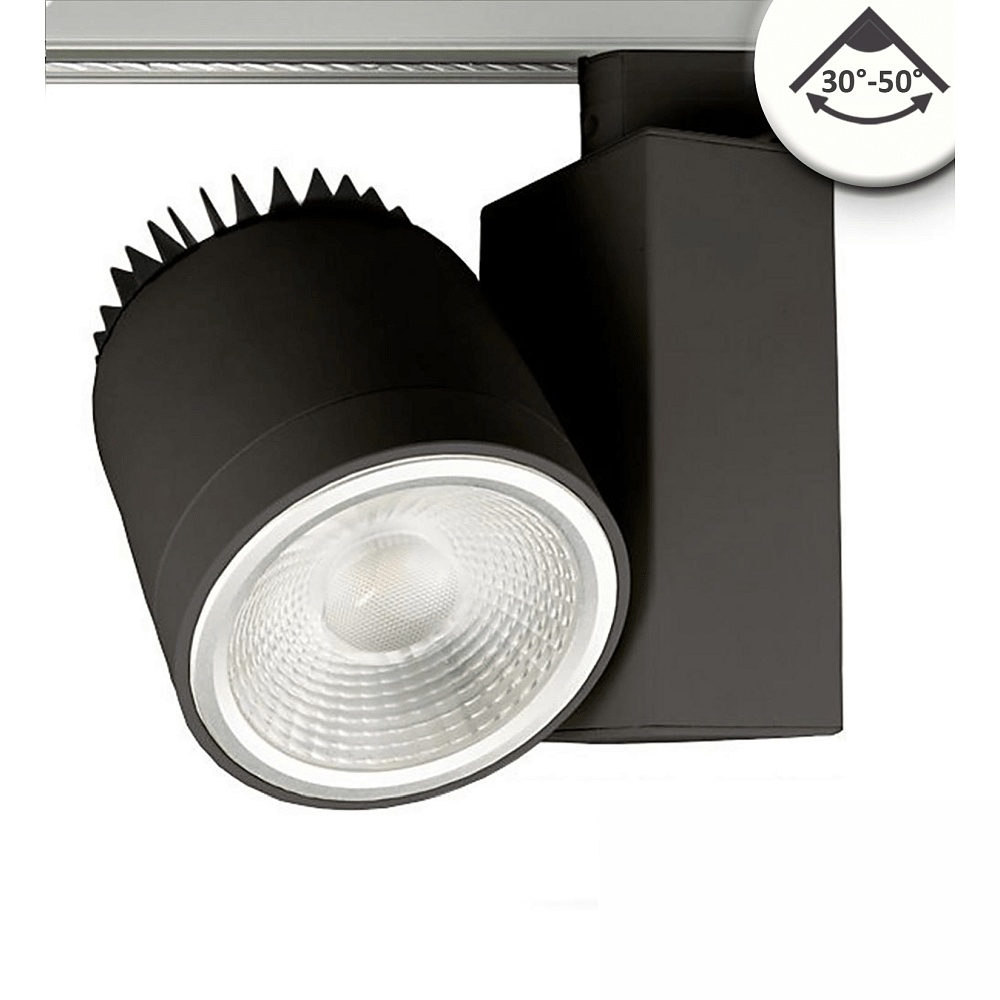 LED 3-phase track spot, 30°-50° focusable, 30W, rotatable and swivelling, dimmable, 4000K 3000lm, matt black