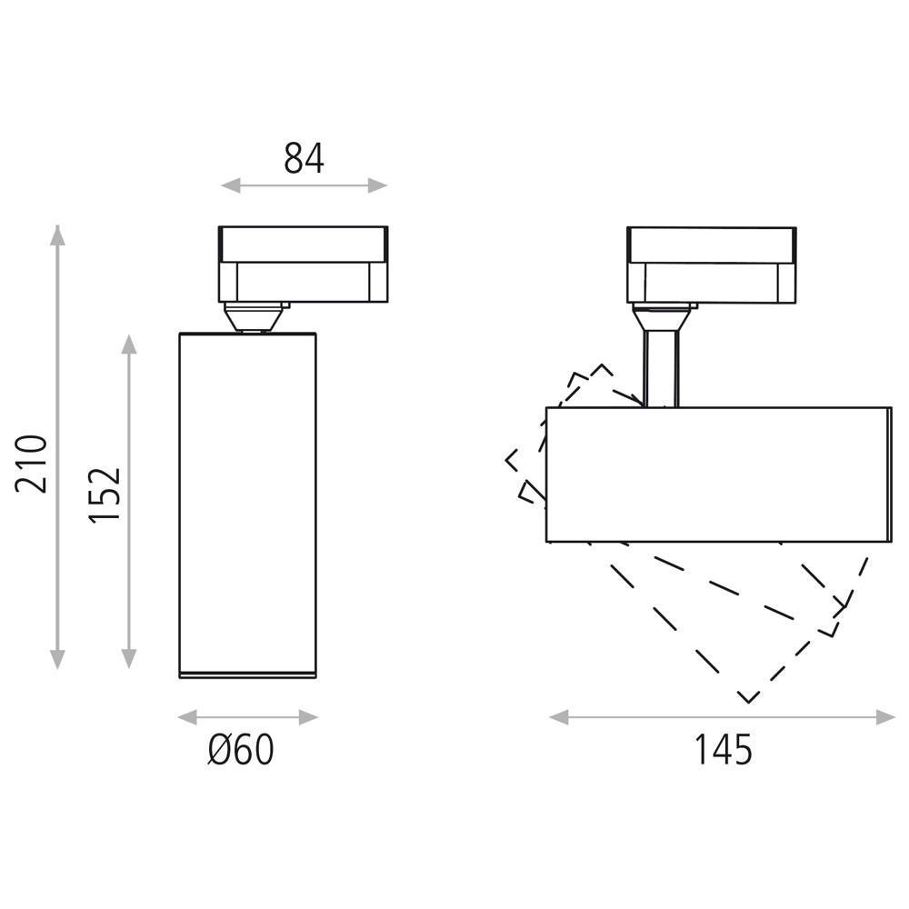The track spotlight is adjustable and offers a rotation range of 350° to direct the light precisely. With dimensions of 8.4 x 6 x 21 cm (with adapter) and a lamp head diameter of 6 x 15.2 cm, it is compact and versatile.