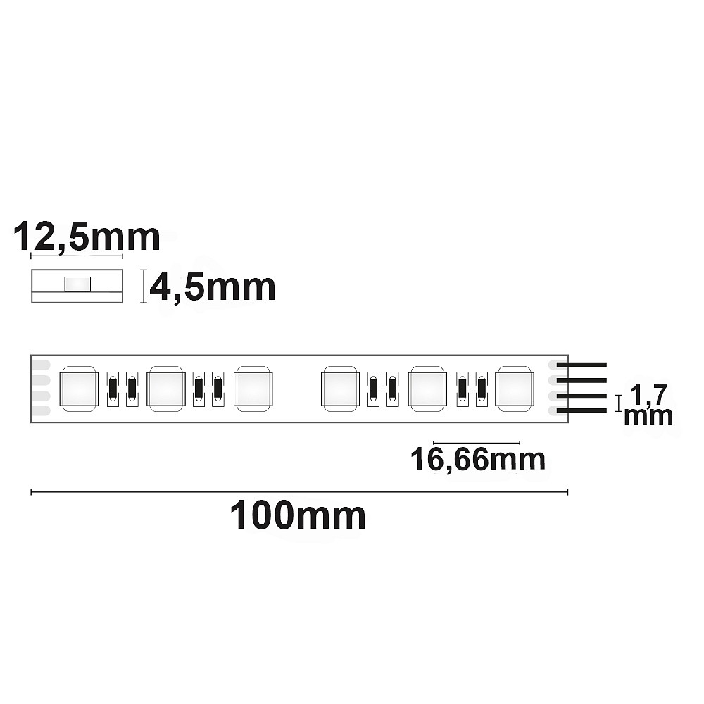 LED AQUA RGB+WW Flex strip, 24V, IP68, 19W/m, 4in1 chip, 500cm