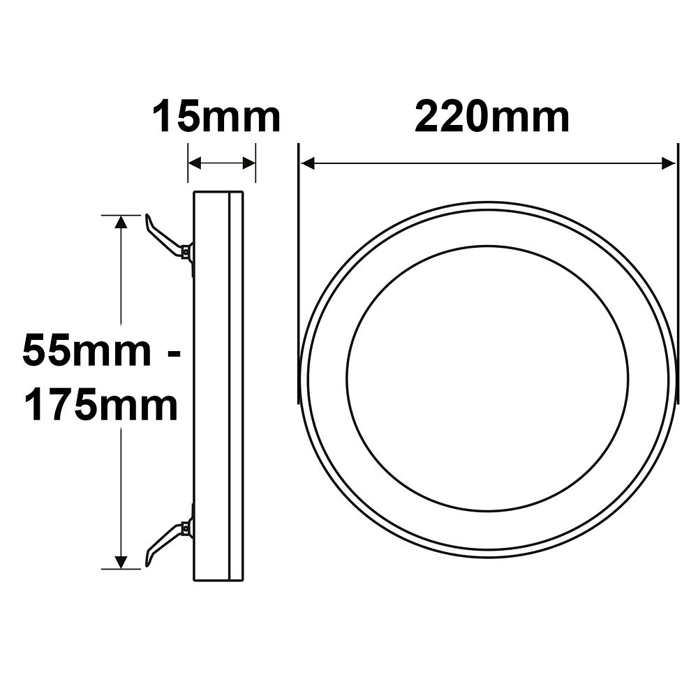 Deckenausschnitt dank verstellbarer Clipfedern variabel von 5,5cm bis 17,5cm.