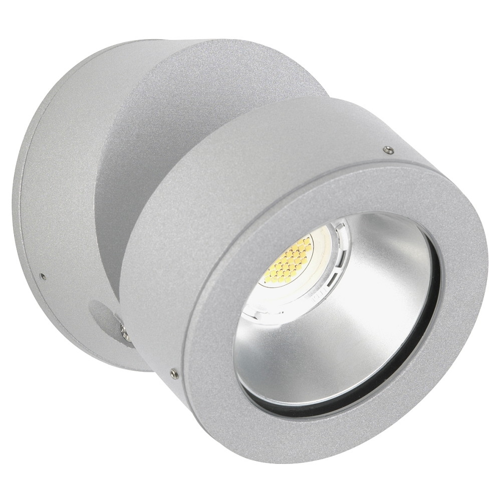 LED Außenwand-Strahler Typ Nr. 2389, IP54, 12W 3000K 1200lm 30°, dreh- und schwenkbar, dimmbar, Alu-Guss / Glas, Silber matt