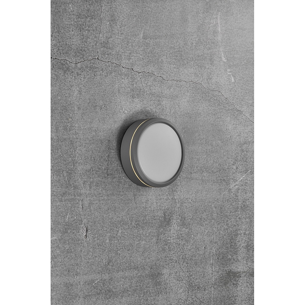 Dank der Schutzklasse IP54 ist die Außenwandleuchte vor Nässe und Staub geschützt und eignet sich somit ideal für den Einsatz im Außenbereich. Der runde PVC-Diffusor auf der Vorderseite sorgt für eine gleichmäßige Lichtverteilung, während der seitliche Deko-Lichtkranz eine zusätzliche dekorative Note verleiht.