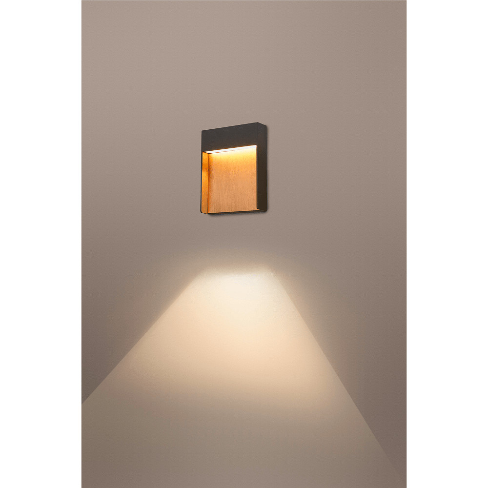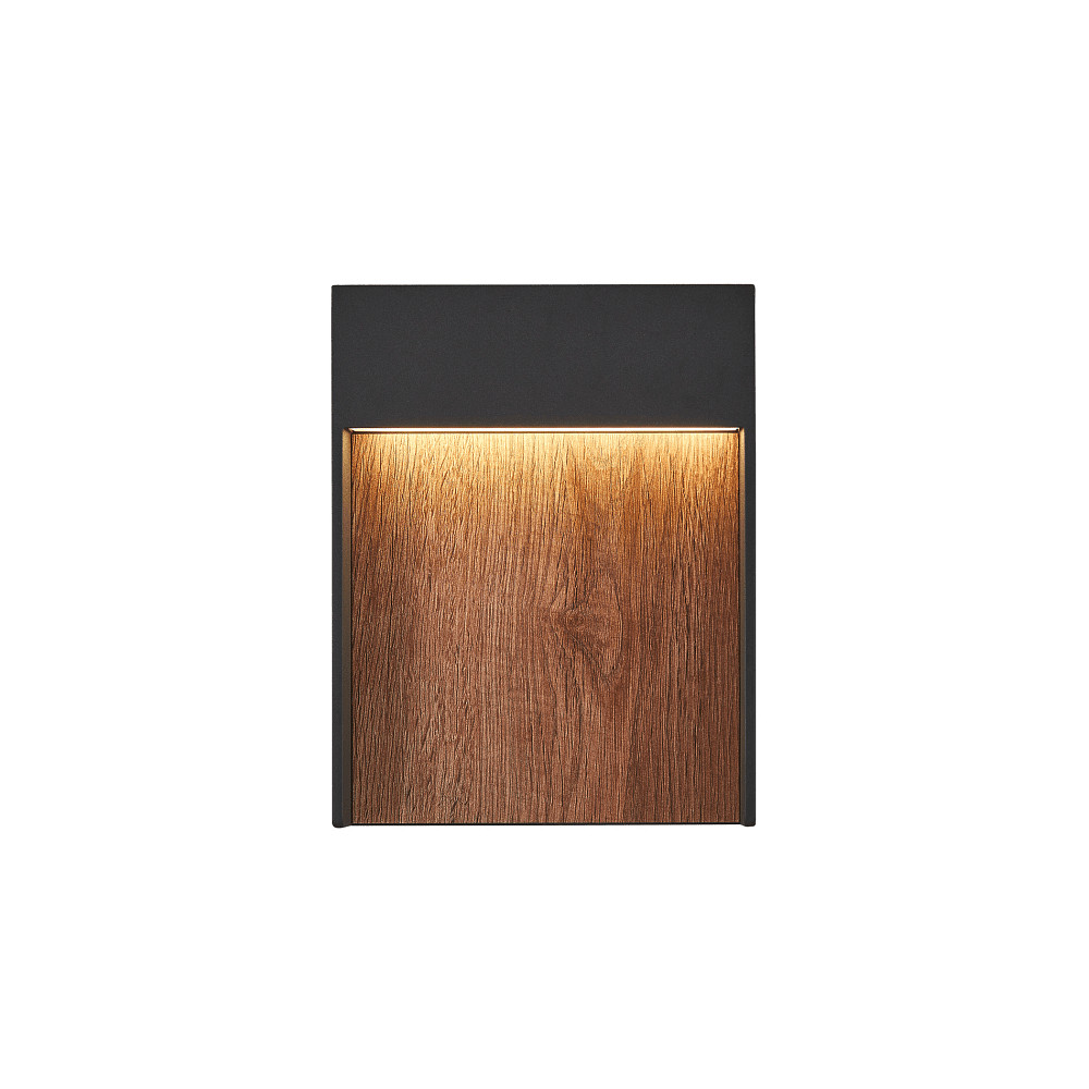 LED Außenwandleuchte FLATT, IP65 IK03, eckig, 13W 3000/4000K (CCT Switch), anthrazit / Holz braun