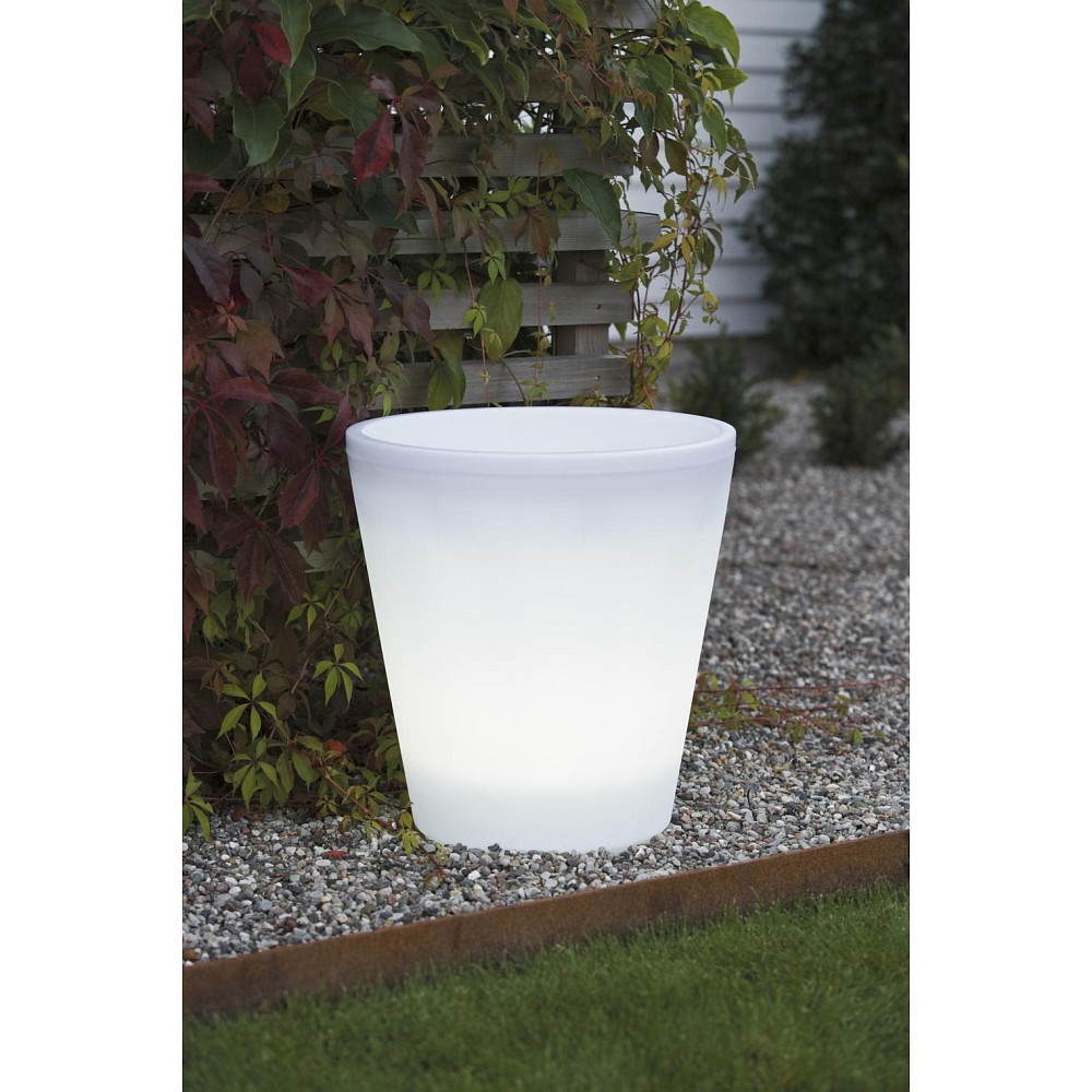 LED beleuchteter Pflanzentopf ASSISI, IP44, 12V, 2.4W 3000K 30lm, mit 600cm Kabel, Kunststoff, weiß, Ø 37cm / H 40cm