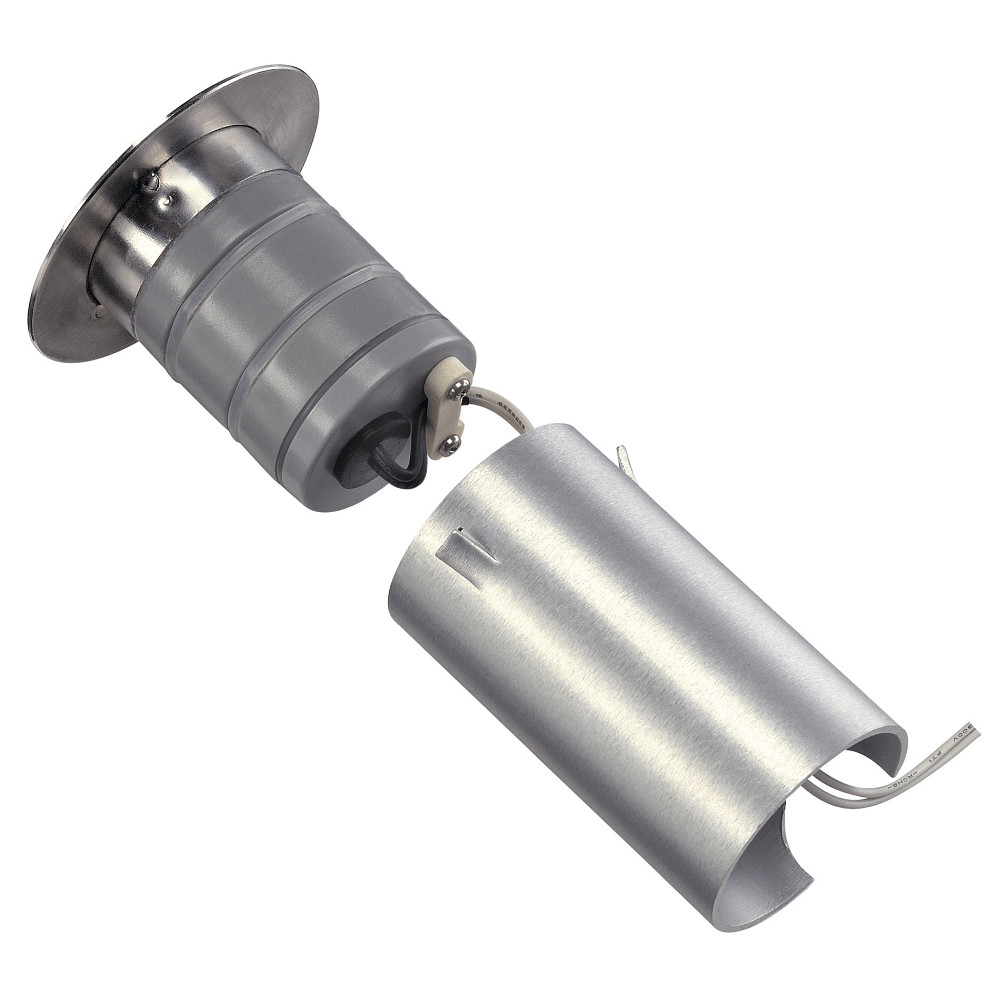 Im Lieferumfang sind neben der LED-Leuchte auch Anschlusskabel mit einer Länge von 40 cm sowie eine Einbauhülse enthalten, die den Einbau erleichtern. Die Leuchte wird mit einer Betriebsspannung von 12 Volt Wechselstrom betrieben und ist für den Anschluss an einen konventionellen Transformator ausgelegt. Das offene Kabelende ermöglicht eine flexible Verbindung. Kabelverbinder müssen separat erworben werden. Die Installation gestaltet sich dank der mitgelieferten Komponenten unkompliziert und sicher.