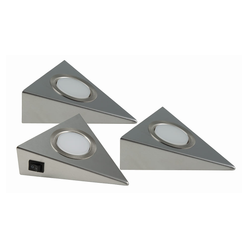 LED Cabinet spot GENUA set of 3, 3x2W, 120°, 3000K, 270lm, IP20, not dimmable, stainless steel