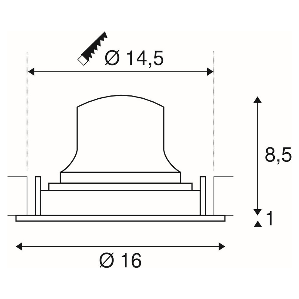 The tiltable and swiveling recessed ceiling light has a beam angle of 120°, allowing for precise orientation. With a installation depth of 10.5cm and an installation opening of 14.5cm, it is easy to install and fits into many ceiling constructions.