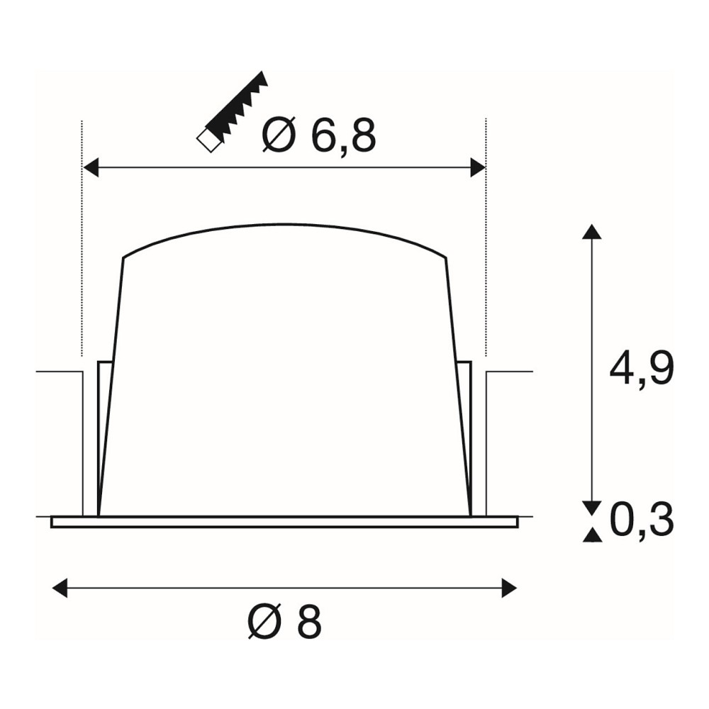 The ceiling recessed light is from the renowned brand SLV and stands out for its high-quality craftsmanship. With a recess depth of only 5.5cm and a cut-out diameter of 6.8cm, it is easy to install and fits into almost any ceiling. The connection cable has a length of 10cm for flexible mounting options.