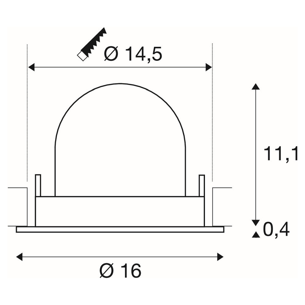 The ceiling recessed light has a beam angle of 40° and a luminous flux of 2200lm. It features a circular installation opening with a diameter of 14.5cm and a depth of 11.5cm. The housing is made of high-quality aluminum and polycarbonate (PC), ensuring a robust and long-lasting construction.