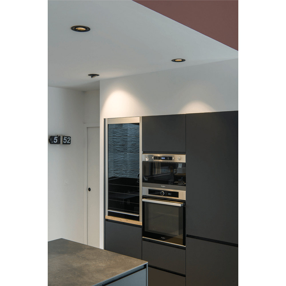 The ceiling recessed light has an elegant black color and is made of high-quality aluminum and polycarbonate (PC). With a size of 10x7x10 cm, it fits perfectly into any ceiling and seamlessly integrates into the room design.