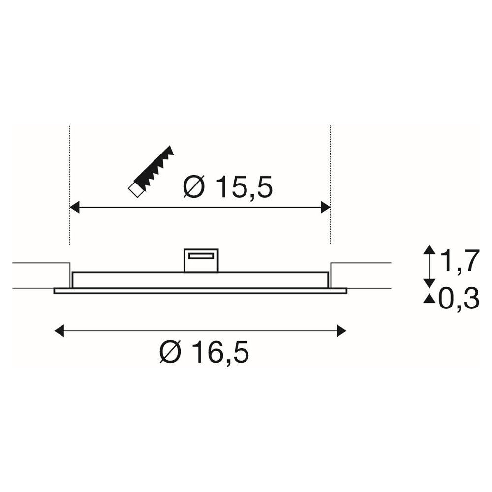 The design of the recessed ceiling light is modern and unobtrusive. With a diameter of 16.5cm and a recessed depth of 3cm, it fits perfectly into your ceiling. The installation opening is 15.5cm in diameter. The housing is made of high-quality white aluminum and weighs only 0.18kg.
