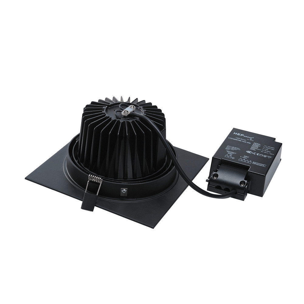 LED Ceiling recessed spot NEW TRIA DL SET, square, COB LED, 2700K, 30°, incl. Driver, Clip springs, black