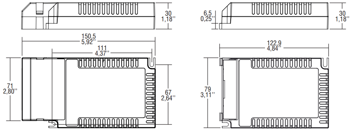 With a weight of only 195g and a size of 12.3 x 7.9 x 3 cm, the TCI LED converter is particularly compact and lightweight. This makes it easy to install and space-saving to mount. The white housing blends inconspicuously into any environment.