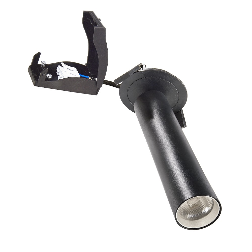 Der Strahler verfügt über ein COB Leuchtmittel und ist dimmbar sowohl mit Phasenabschnitt als auch mit Phasenanschnitt. Der Drehbereich beträgt 300cm und der Ausstrahlungswinkel liegt bei 36°. Zusätzlich ist der LED Deckeneinbau-Strahler verstellbar und verfügt über einen integrierten LED Treiber.