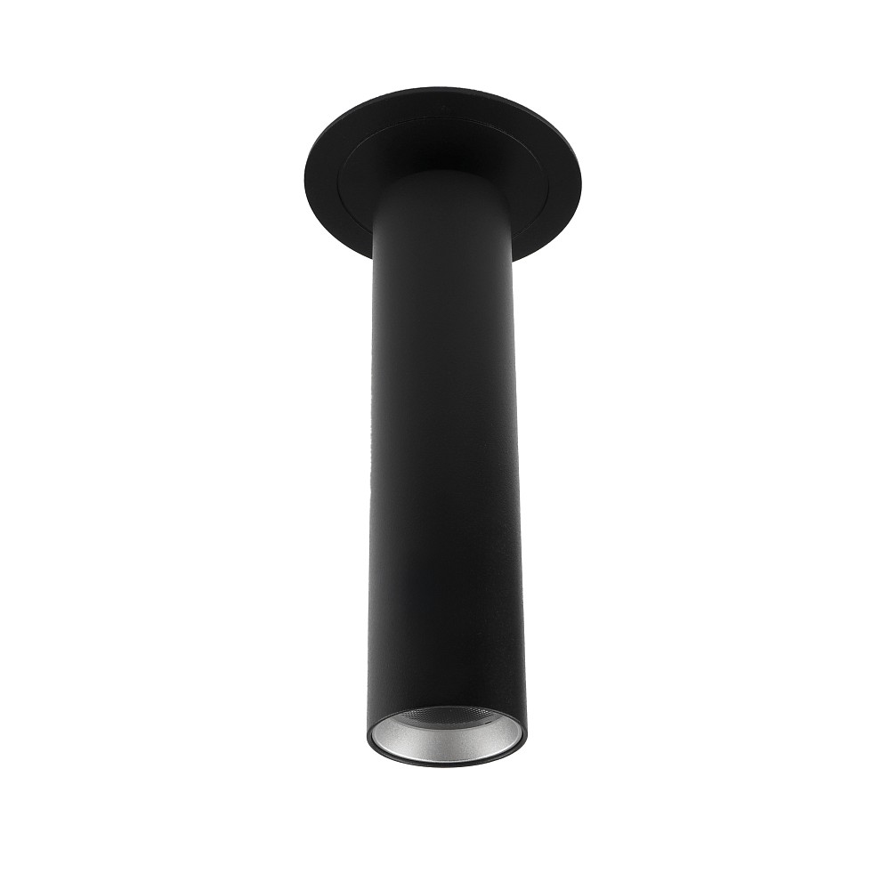 Der LED Deckeneinbau-Strahler SLIM ist in der Farbe tiefschwarz gehalten und besteht aus Aluminium. Er hat eine runde Form und eine Blende mit einem Durchmesser von 8cm. Der Leuchtenkörper hat einen Durchmesser von 3,9cm und eine Länge von 16cm.