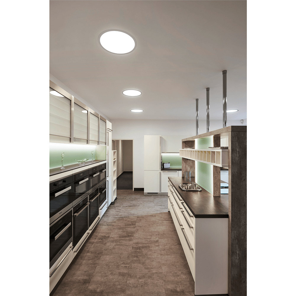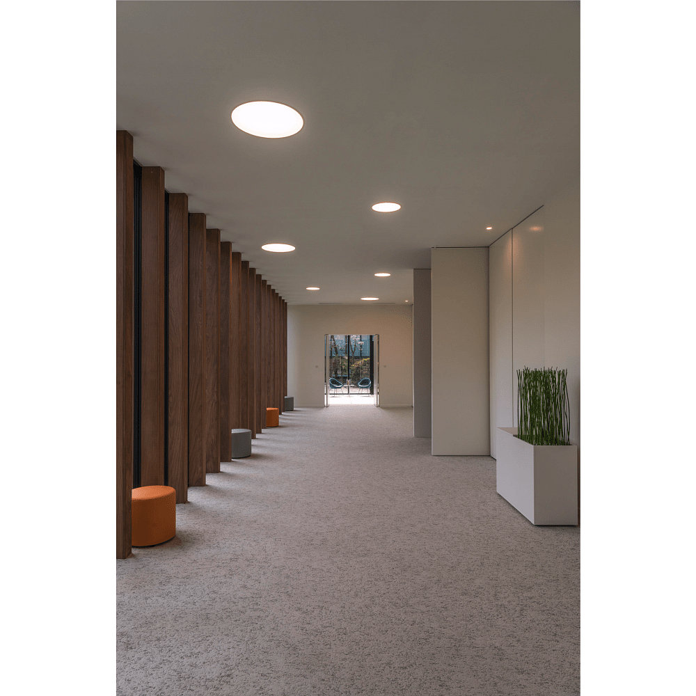 Dank der symmetrischen Lichtverteilung eignet sich die Deckeneinbauleuchte ideal für den Einsatz in Innenräumen. Ihr Einsatzbereich erstreckt sich über Decken, wobei sie mit ihrem runden Design eine harmonische Atmosphäre schafft. Das offene Kabelende ermöglicht eine einfache Montage in einem 61cm Deckenausschnitt.