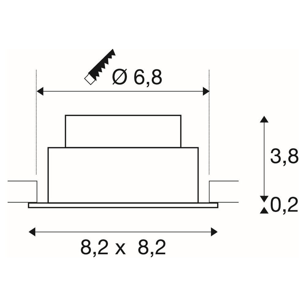 Das eckige Design der Leuchte in weißem Aluminium macht sie zu einem modernen und unauffälligen Einrichtungsgegenstand. Die Einbautiefe beträgt 4cm und die Einbauöffnung hat einen Durchmesser von 6,8cm. Die LED-Lampe hat eine mittlere Lebensdauer von 50000 Stunden und kann nicht ausgetauscht werden.