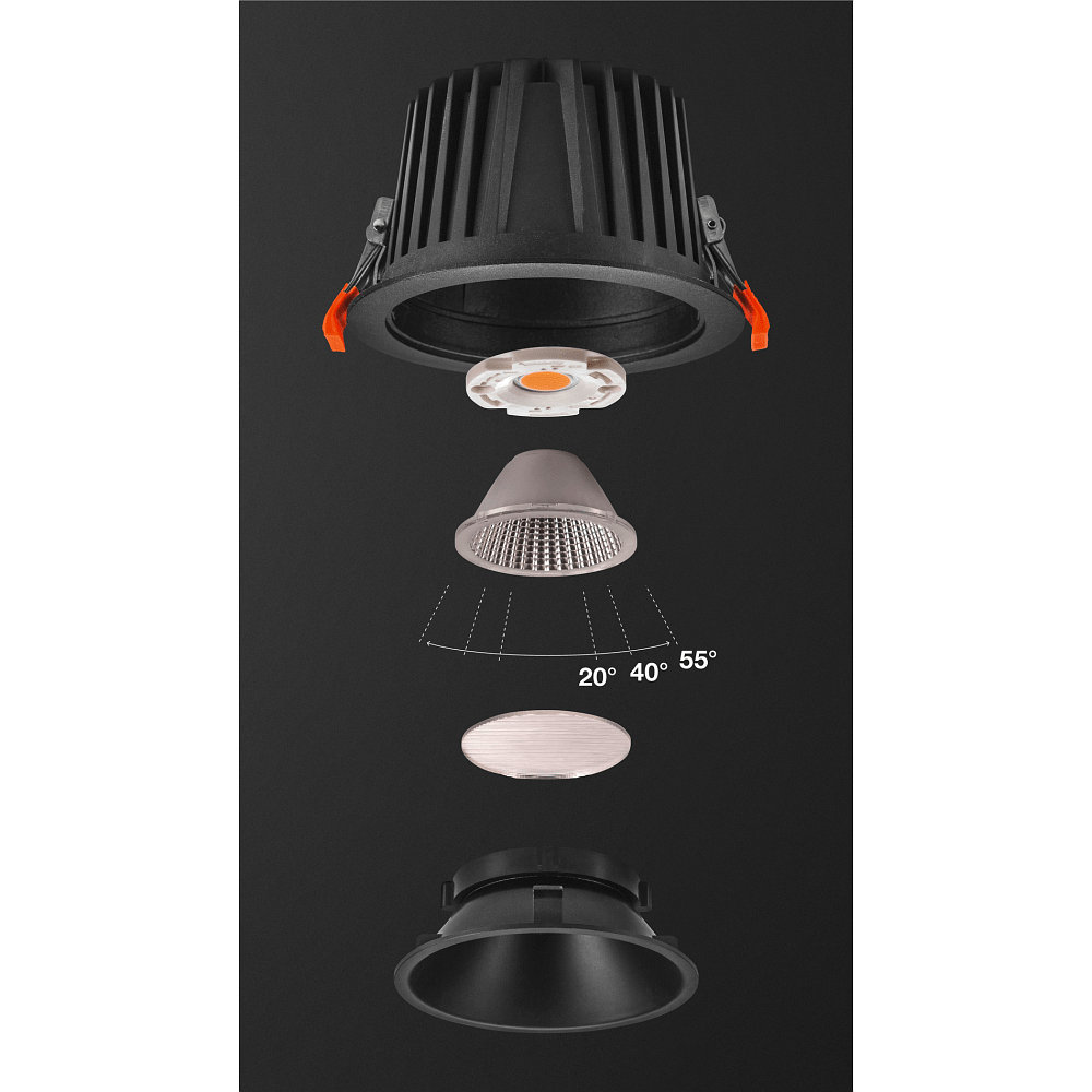 LED Deckeneinbauleuchte NUMINOS DL XL, 3000K, IP20, 40°, 3300lm, UGR 21, Schwarz / Schwarz