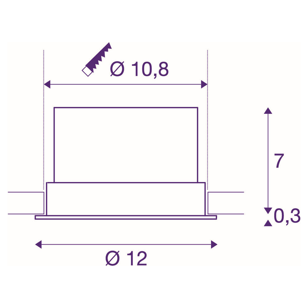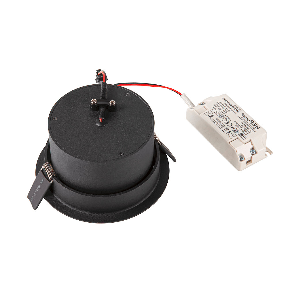 Die Deckeneinbauleuchte hat eine Größe von Ø 12 x H 7,3 cm und wiegt 0,55 kg. Ihr modernes Design in schwarz und transparent passt sich nahtlos in jede Raumgestaltung ein. Das Gehäuse besteht aus Aluminium und Glas, was für eine robuste und langlebige Konstruktion sorgt.