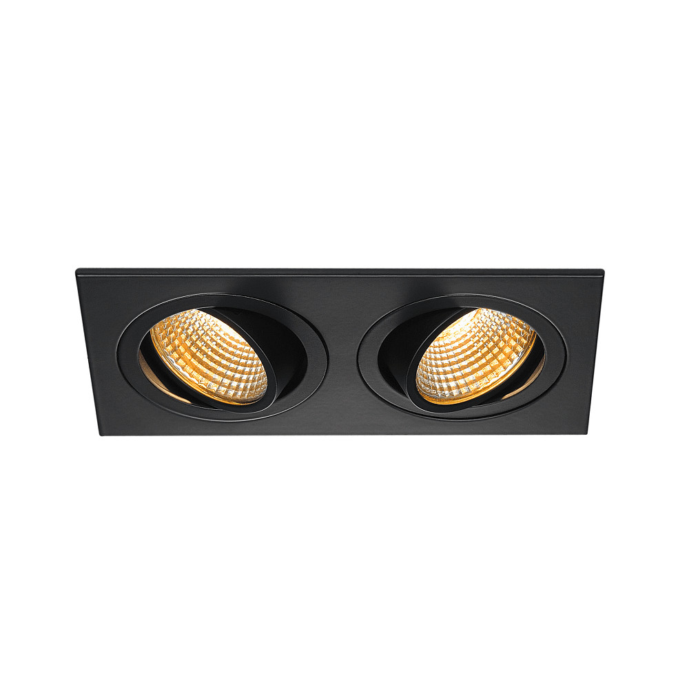 LED Deckeneinbaustrahler NEW TRIA 2 DL SQUARE SET, COB LED, 2700K, 38°, inkl. Treiber, Clipfedern, Schwarz