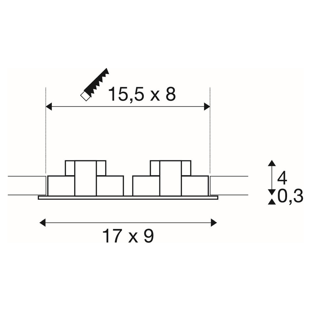Der LED Deckeneinbaustrahler NEW TRIA 2 DL SQUARE SET besticht durch sein eckiges Design und die hochwertige Verarbeitung aus Aluminium und Kunststoff. Mit einer Größe von 17 x 9 x 4,8 cm und einem Gewicht von 0,62 kg passt er perfekt in jeden Raum.