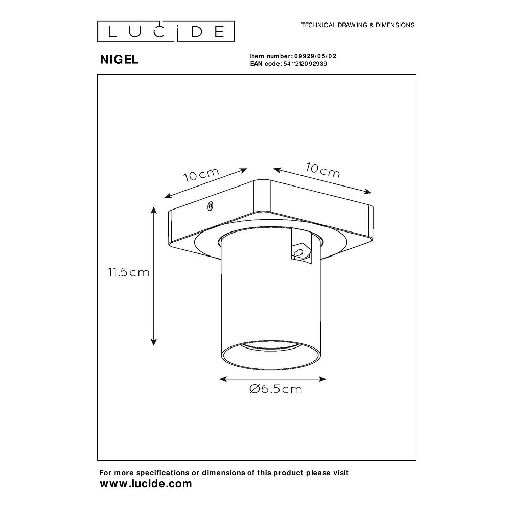 Mit den Maßen 10x10x11,5 cm (inkl. Baldachin) passt der Deckenstrahler NIGEL in nahezu jeden Raum. Die Montage an der Decke ist dank des mitgelieferten Leuchtmittels und der Sockelbezeichnung GU10 kinderleicht.