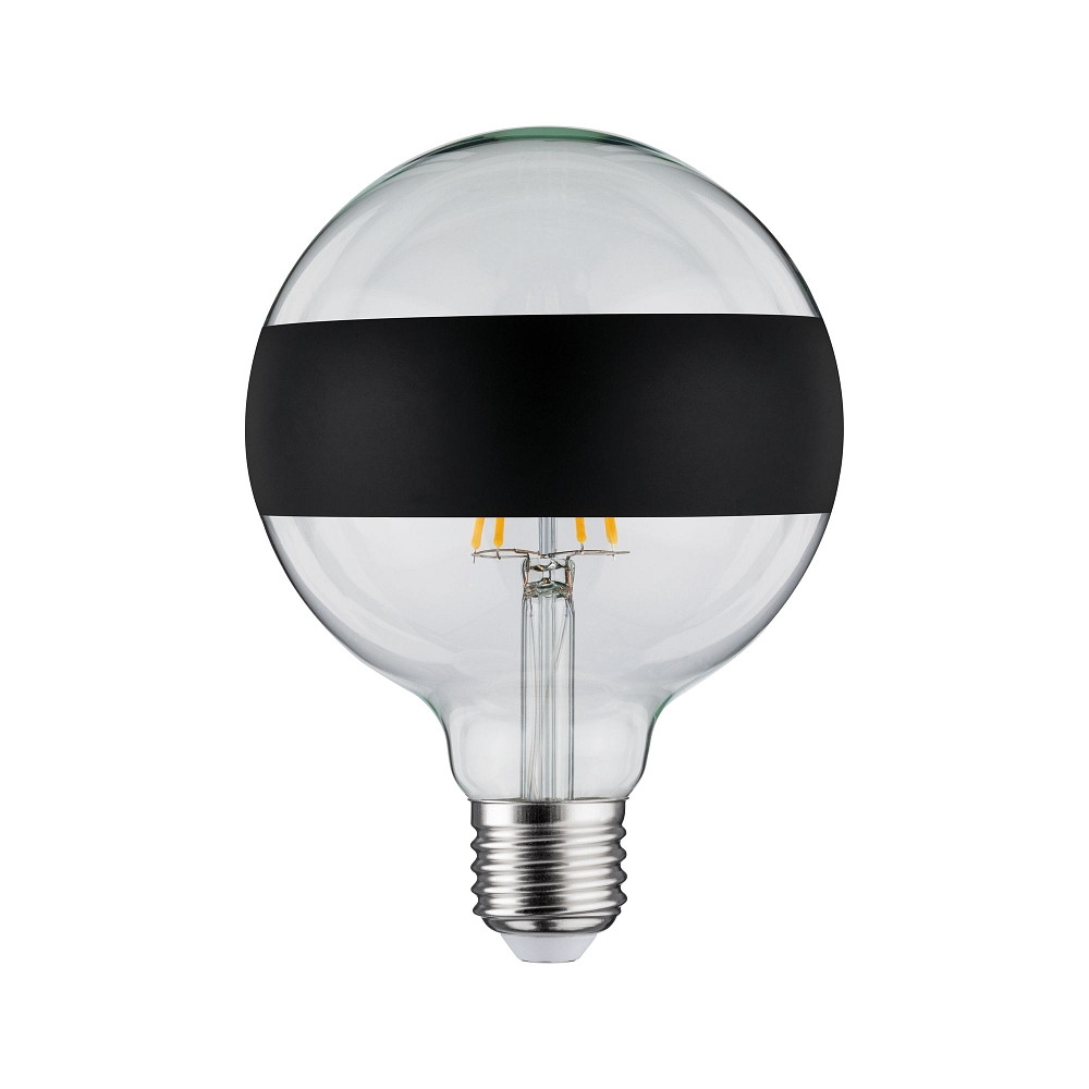 LED Deco Globe G125 Ring mirrored Lamp BLACK MATT, 230V, E27, 6.5W 2600K 640lm, dimmable, clear