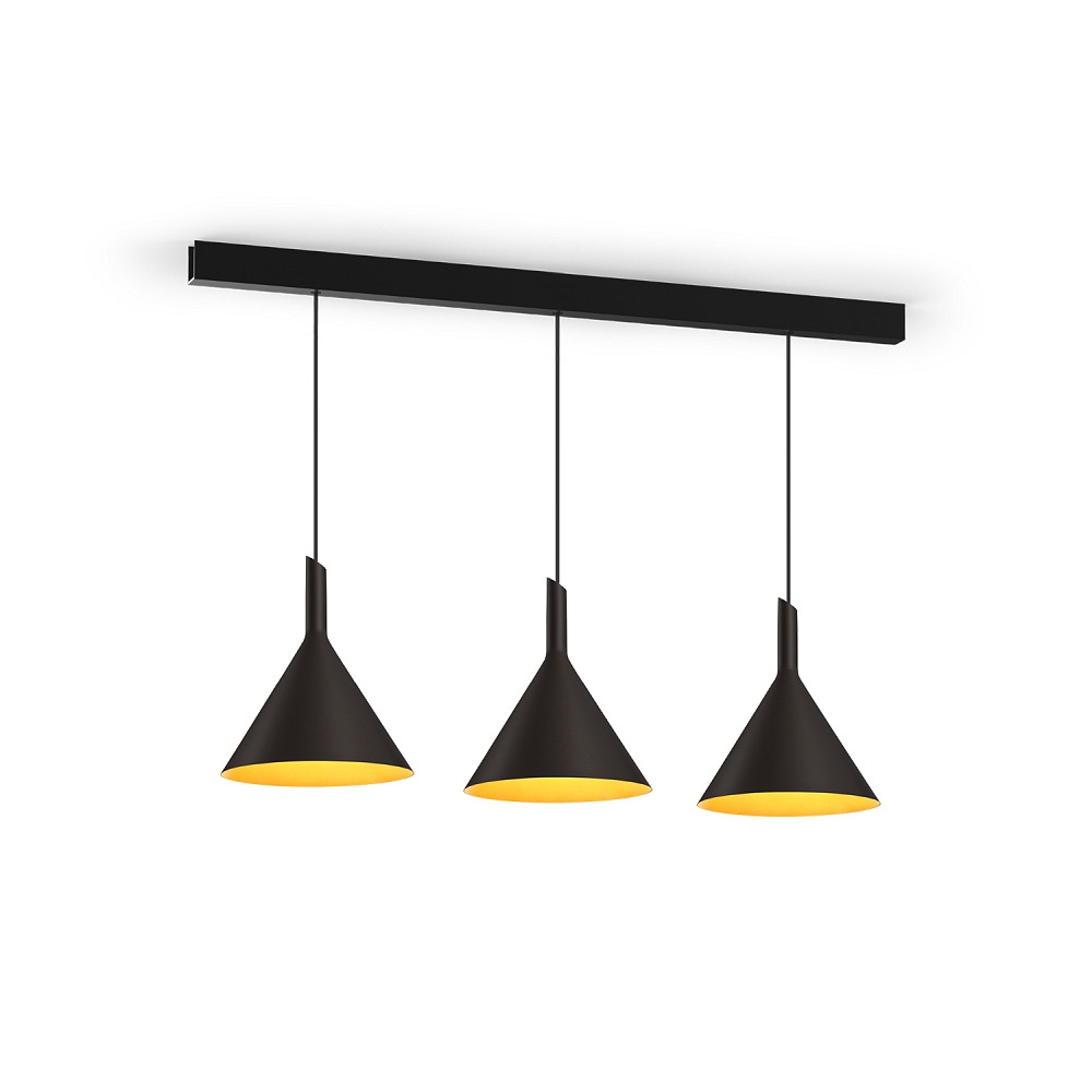 The SHIEK 3.0 is dimmable with phase-cut dimmers and comes with a 400cm long supply cable, a dimmable LED driver, and a long ceiling hook. The pendant cable can be shortened during installation to adapt perfectly to the room height.
