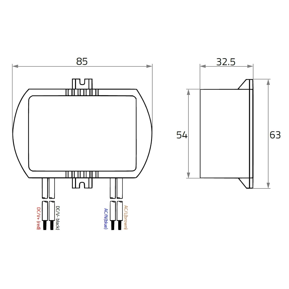 The Rutec LED constant current converter complies with CE and RoHS standards, making it safe and environmentally friendly. With dimensions of 8.5 x 5.4 x 3.25 cm and an operating voltage range of 230V~, it is versatile and reliable in application.
