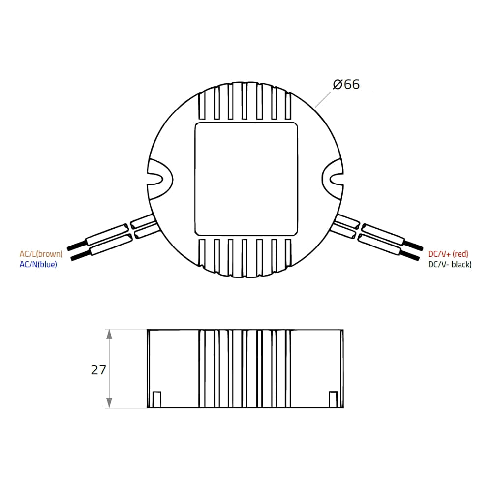With a size of Ø 6.6 cm and height 2.7 cm, the constant current round converter is compact and discreet in its application. It is suitable for various lighting projects where efficient and flexible light control is required.