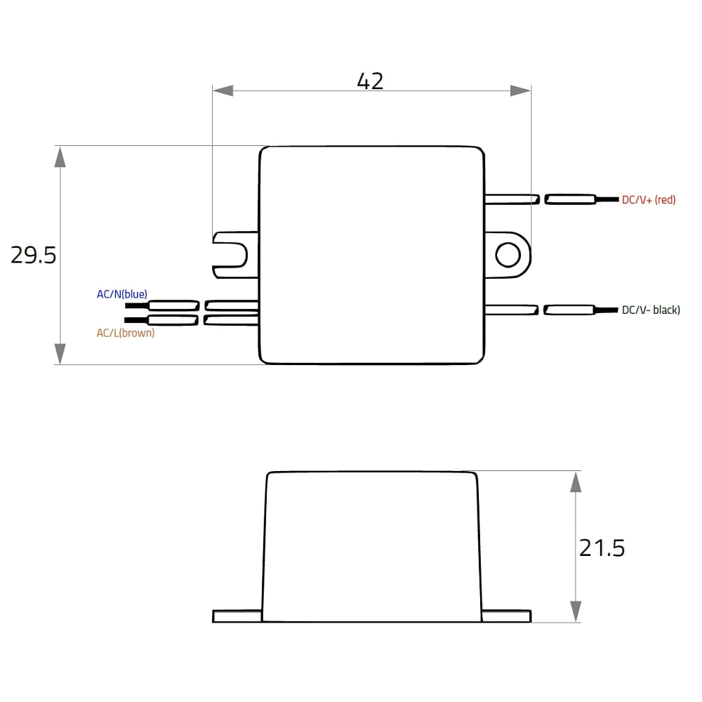 With dimensions of only 4.2 x 2.95 x 2.15 cm, this LED constant current converter is very compact and space-saving. Its open cable end allows for easy installation and connection to your LED lighting.