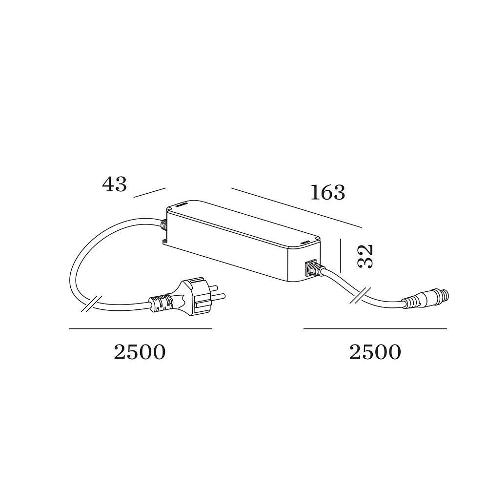 The length of the connection cable is 250cm each, and the power connection is via an IP Schuko plug. With a mains frequency of 47-63Hz and a burning position of 964, this LED driver provides optimal performance for your lighting system.