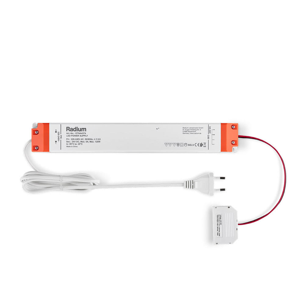 The EASY CONNECT LED driver from Radium is a high-quality constant voltage power supply specifically designed for powering 24V DC LED strips. With a power output of 120W and a maximum current load of 5A, this device ensures a reliable and stable power supply for your lighting systems. Thanks to the integrated protection class 2 and the IP20 protection rating, the driver is safely and robustly constructed. The compact design with dimensions of 31.6 x 4 x 3.3 cm and a weight of only 0.627 kg makes installation easy.