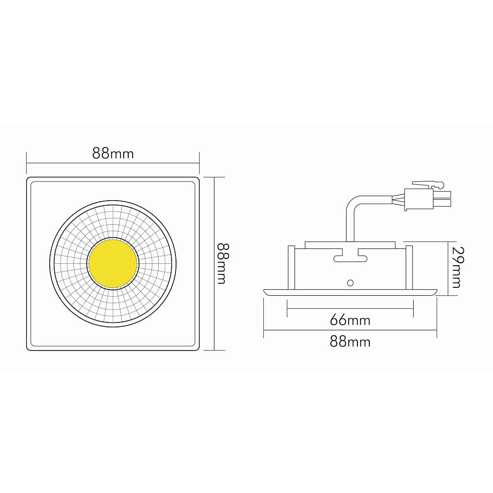 Das Downlight verfügt über eine Leistungsaufnahme von 8W und einen Lichtstrom von 850lm, was für eine helle und energiesparende Beleuchtung sorgt. Mit einer Farbtemperatur von 3000K und einem Farbwiedergabeindex von 94Ra erzeugt das Downlight ein warmweißes und naturnahes Licht. Der Ausstrahlungswinkel beträgt 38°, was eine gleichmäßige Lichtverteilung ermöglicht.