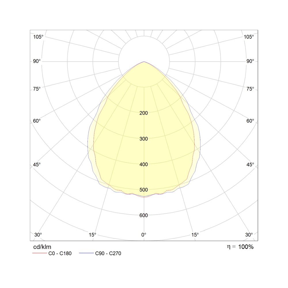 Lichtverteilung: 100% direkt, flächig-symmetrischer Ausstrahlungswinkel 85°.