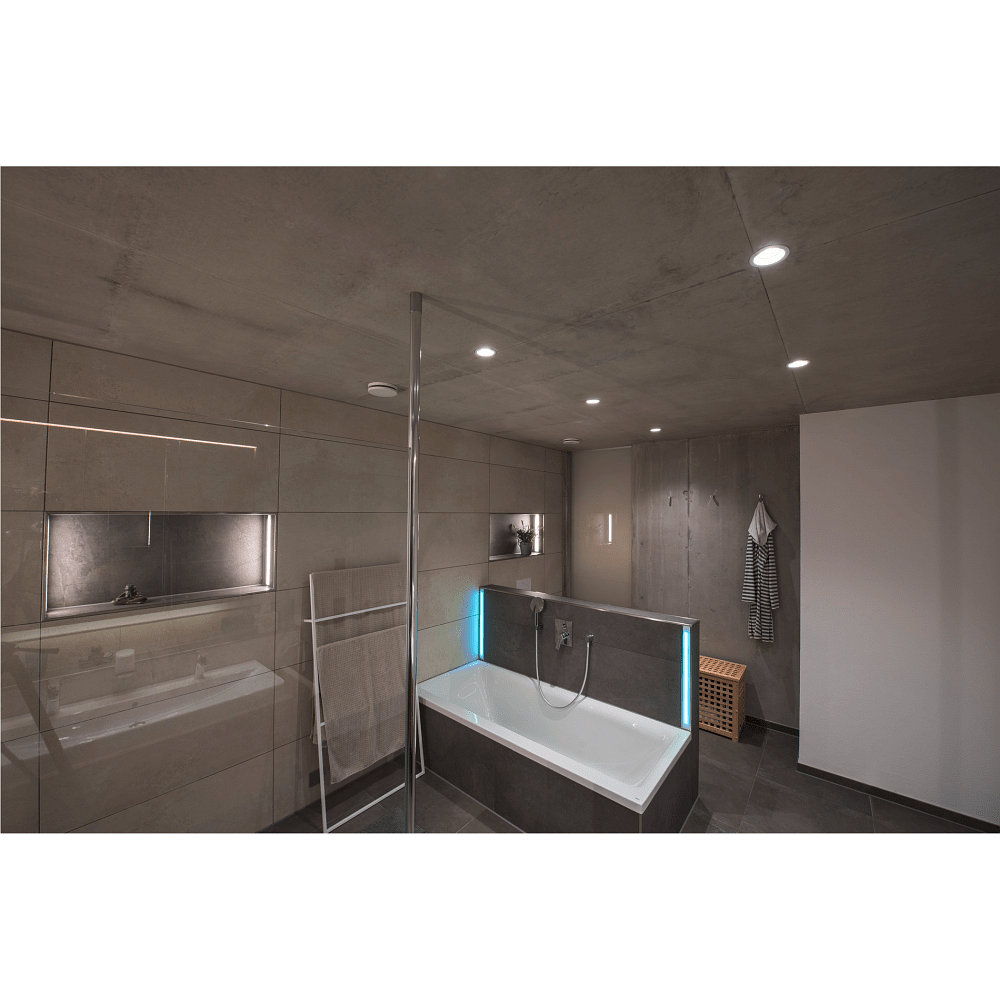 Die LED Einbauleuchte CONTONE ROUND Downlight bietet eine mittlere Lampenlebensdauer von 40000 Stunden und kann die Lichtfarbe von 3000 auf 2000K ändern, wenn sie gedimmt wird. Zusätzlich ist sie mit Premium LED Leuchtmitteln ausgestattet und eignet sich ideal für den Einsatz in Wohnräumen und Büros.