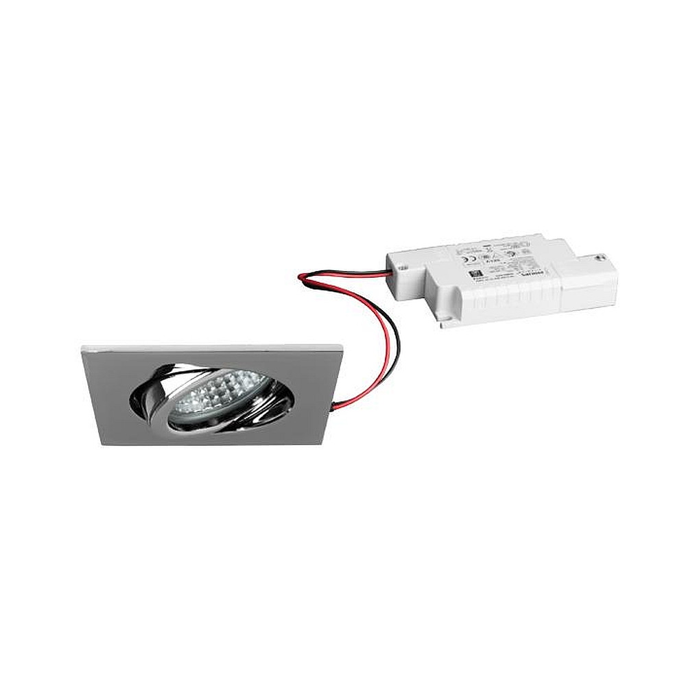 LED Einbaustrahler TIRREL-S, IP20, eckig, 230V AC, 6W 3000K 680lm 38°, schwenkbar, dimmbar, chrom