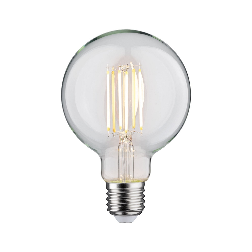 Die LED Filament Globe G95 von Paulmann ist ein energieeffizientes Leuchtmittel mit einer Leistungsaufnahme von 7W und einem Lichtstrom von 806lm. Dank der dimmbaren Funktion und der Farbtemperatur von 1800-3000K kann die Lichtfarbe von warmweiß bis gemütlich gedimmt werden.