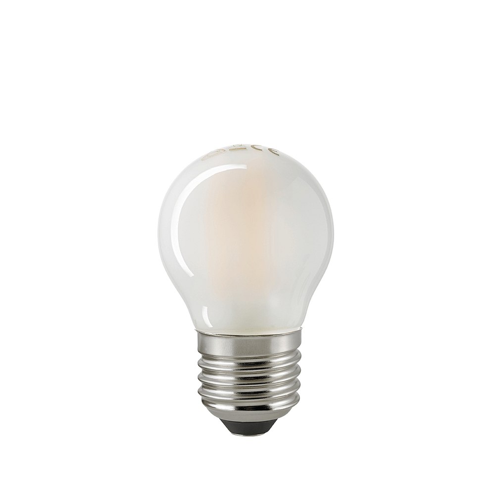 LED Filamentlampe KUGEL, 230V, Ø 4.5cm / L 7.8cm, E27, 4.5W 2700K 470lm 300°, dimmbar, matt