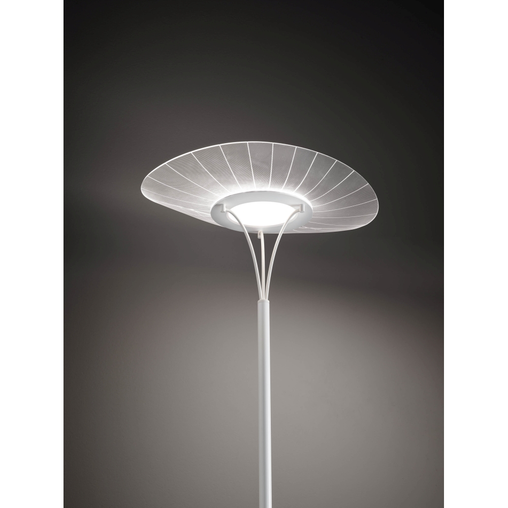 The LED floor lamp VELA from Fabas Luce is not only energy-efficient but also durable. With an average lamp lifespan of 35000 hours and 30000 switching cycles, it is a sustainable lighting solution for your home. The energy efficiency class F also indicates that the floor lamp is energy-efficient in consumption.
